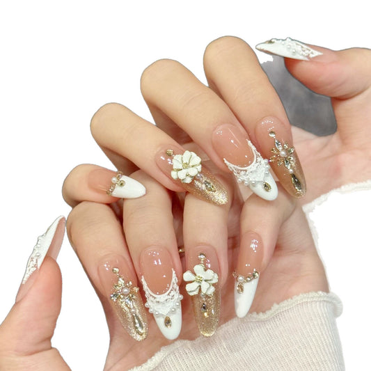 Handmade flower manual press on nails you are the queen princess gifts HPG1015